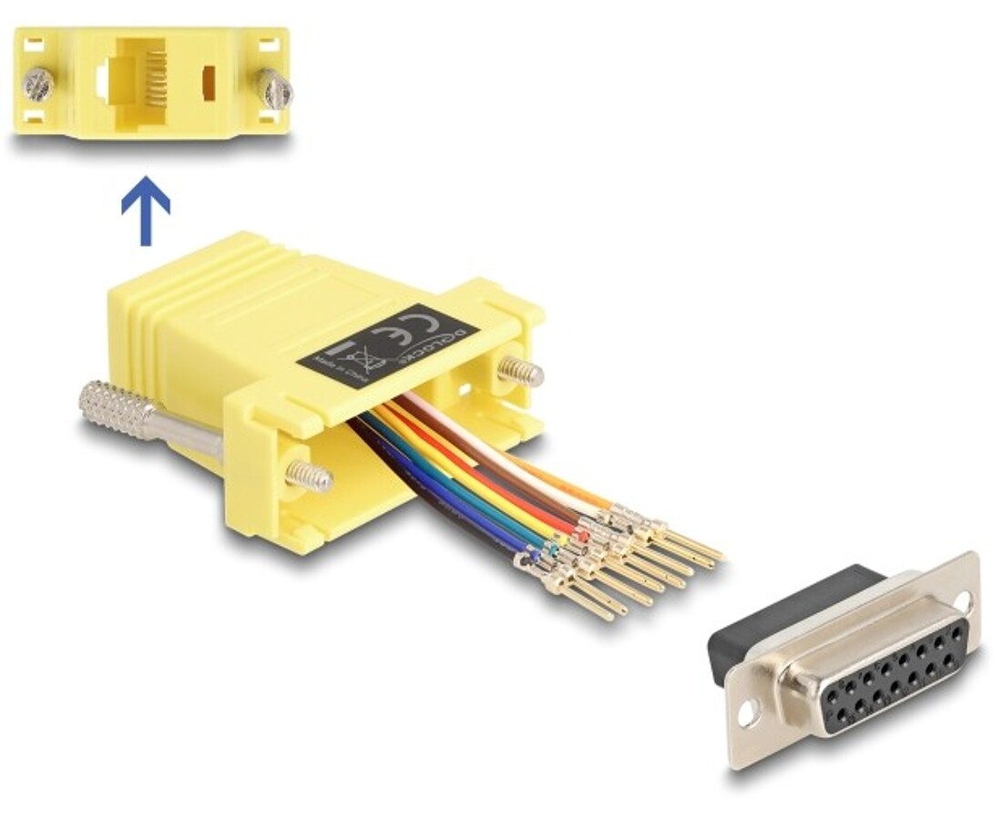 Adapter D-Sub 15-pin. żeński do RJ45 żeńskie do montażu żółty Delock 67113