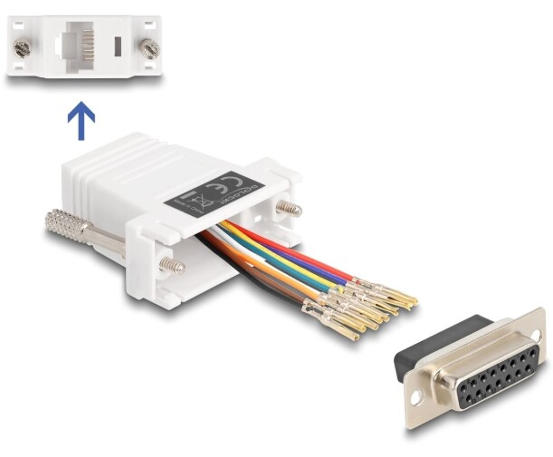 Adapter D-Sub 15-pin. żeński do RJ45 żeńskie do montażu biały Delock 67111