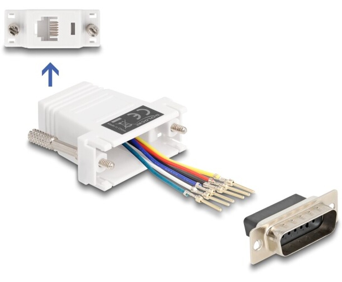 Adapter D-Sub 15-pin. męski do RJ12 żeński do montażu biały Delock 67083