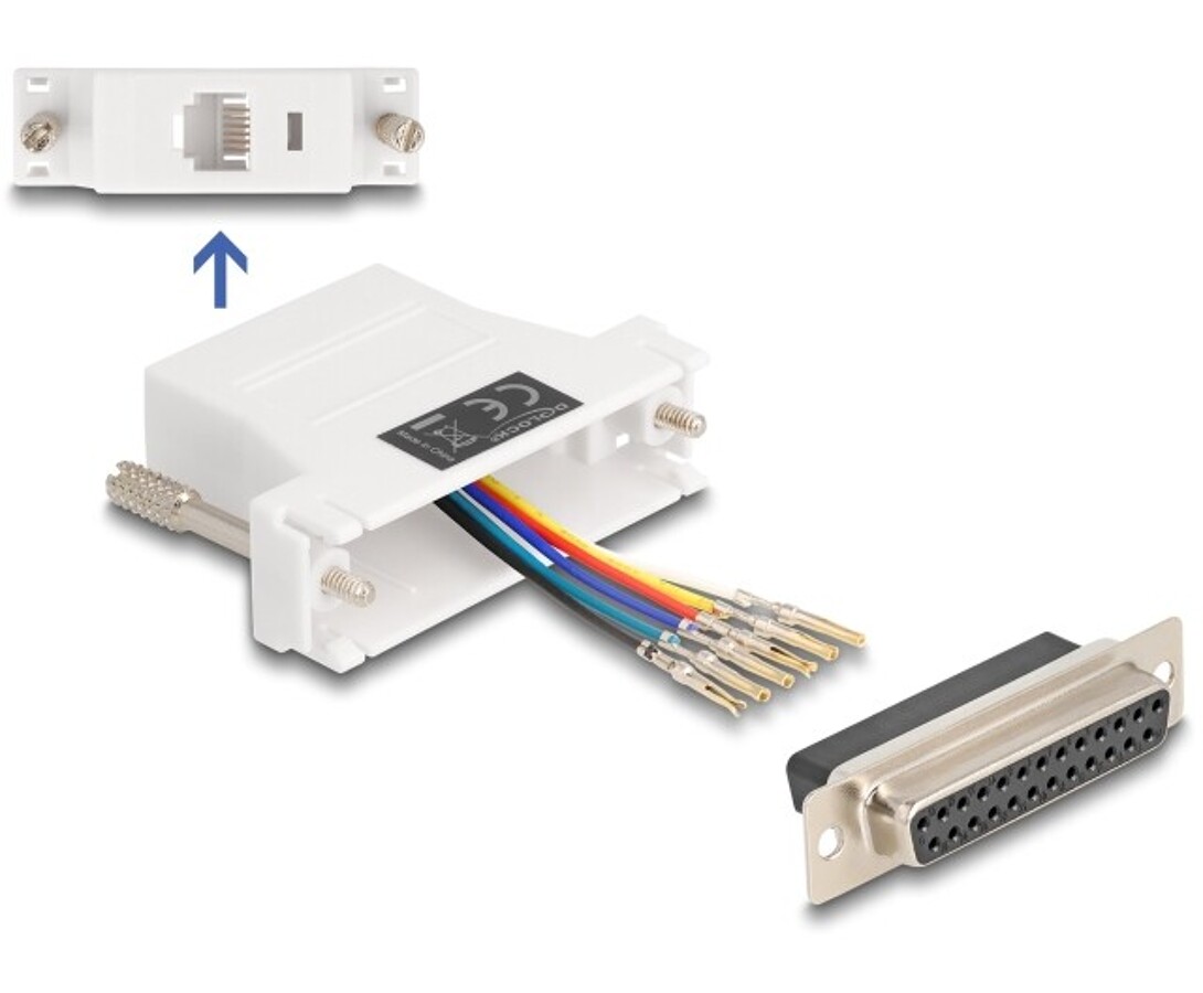 Adapter D-Sub 25-pin. żeński do RJ12 żeński do montażu biały Delock 67098