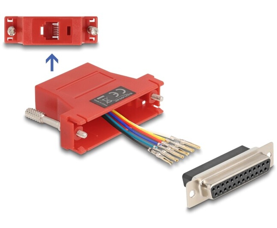 Adapter D-Sub 25-pin. żeński do RJ12 żeński do montażu czerwony Delock 67099