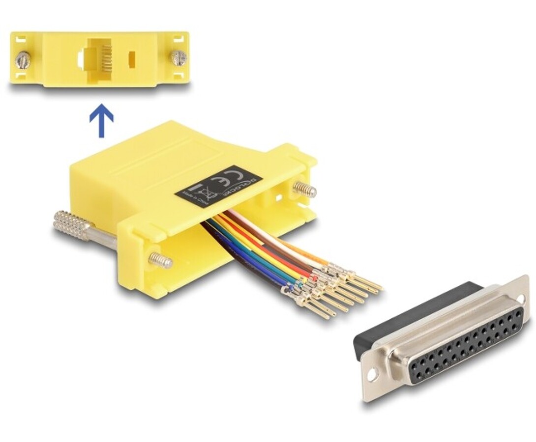 Adapter D-Sub 25-pin. żeński do RJ45 żeńskie do montażu żółty Delock 67119