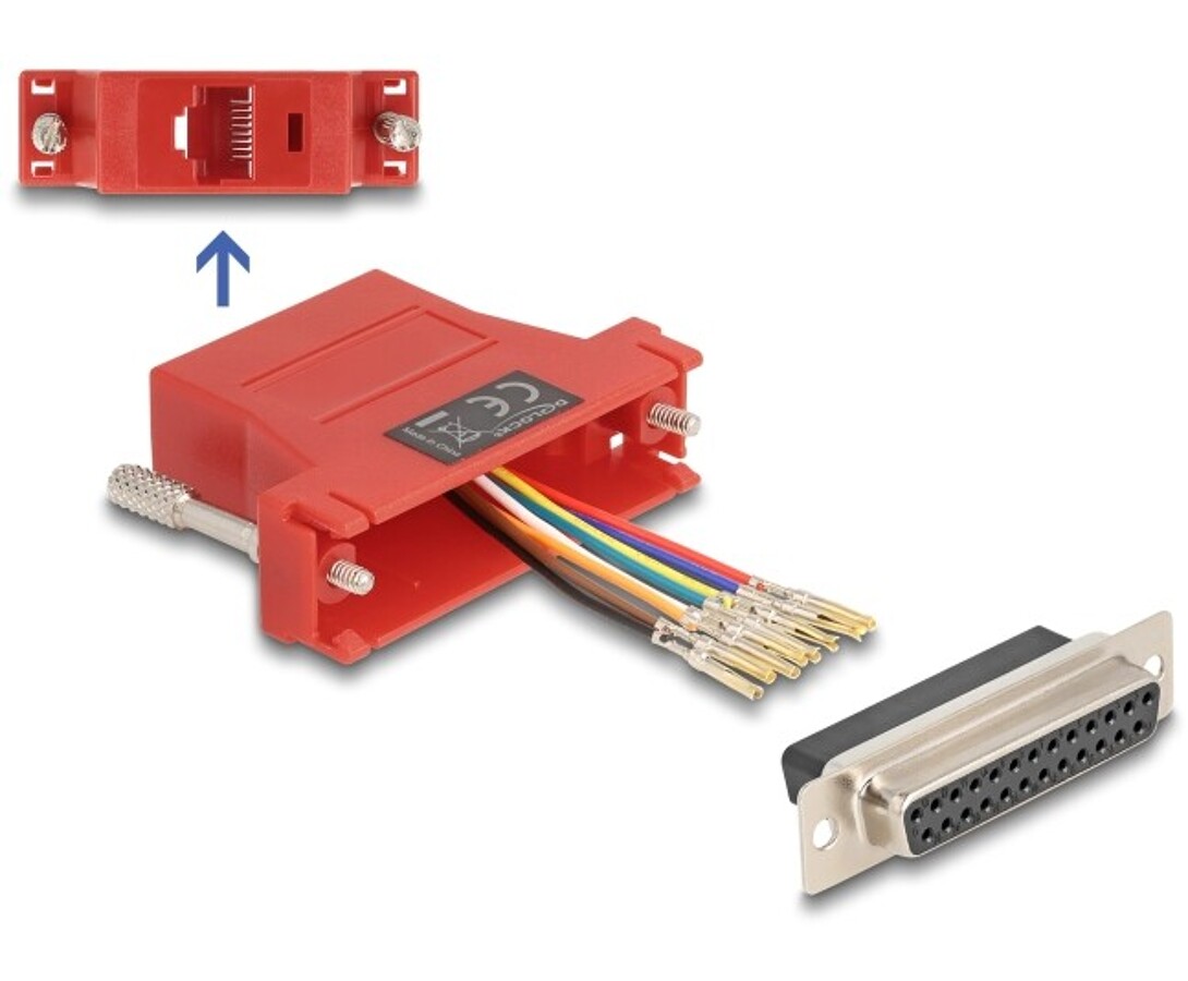 Adapter D-Sub 25-pin. żeński do RJ45 żeńskie do montażu czerwony Delock 67118
