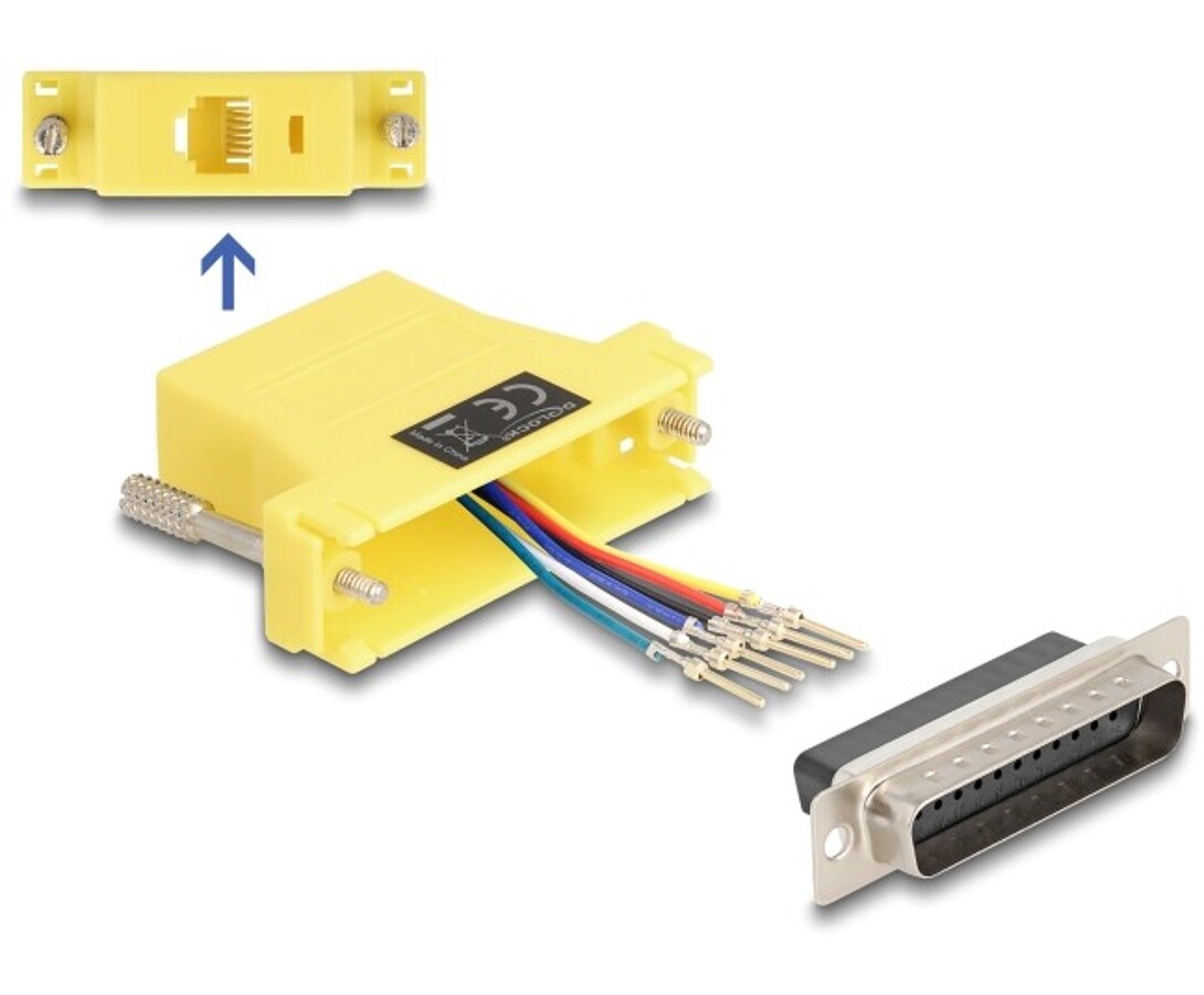 Adapter D-Sub 25-pin. męski do RJ12 żeński do montażu żółty Delock 67096
