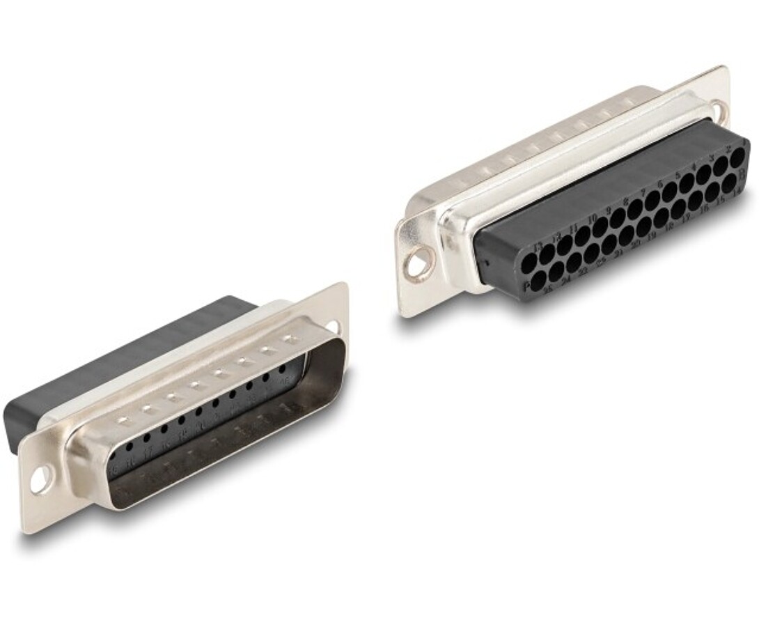 Żeński wtyk D-Sub HD Delock o 50 pinach jest przeznaczony do lutowania i budowy kabli połączeniowych w elektronice, automatyce i systemach przemysłowych. Dzięki zwiększonej gęstości pinów umożliwia przesyłanie wielu sygnałów w kompaktowej formie. Metalowa konstrukcja zapewnia odporność na uszkodzenia mechaniczne i stabilność w szerokim zakresie temperatur.