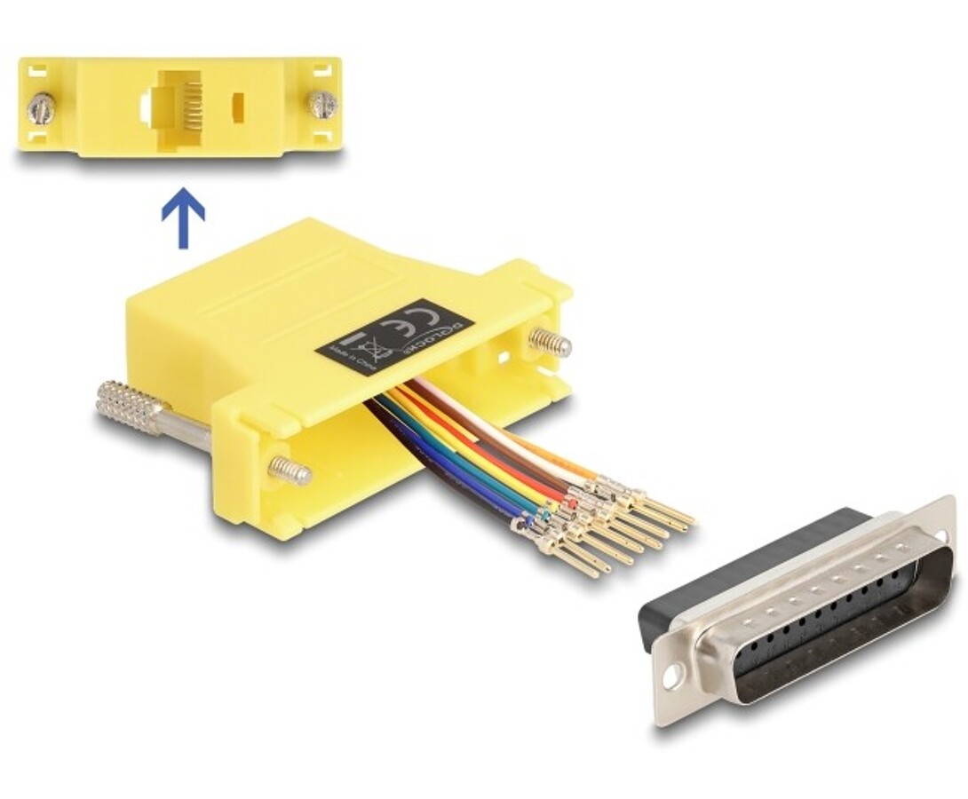 Adapter D-Sub 25-pin. męski do RJ45 żeńskie do montażu żółty Delock 67116
