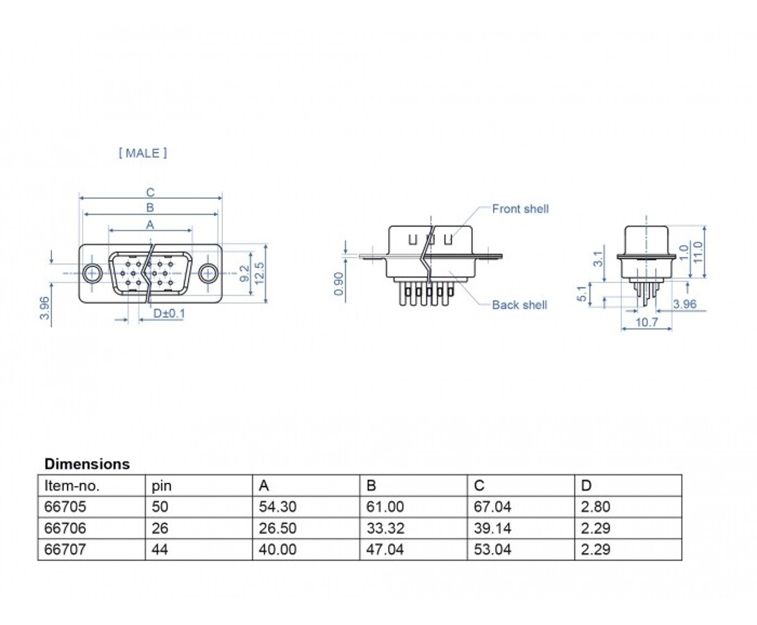 Złącze D-Sub HD 50-pin. męskie metalowe do lutowania 2 szt. Delock 66705