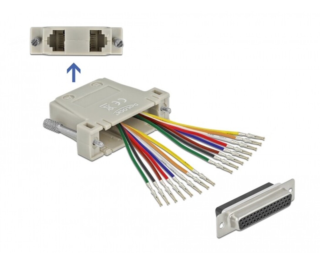 Przejściówka marki Delock umożliwia połączenie interfejsu szeregowego D-Sub 25 z gniazdem RJ45 przy użyciu przewodów sieciowych Cat.5/5e/6. Dzięki konfigurowalnym pinom pozwala dopasować połączenia do wymagań różnych systemów przemysłowych i serwisowych, zapewniając niezawodność oraz stabilne działanie.