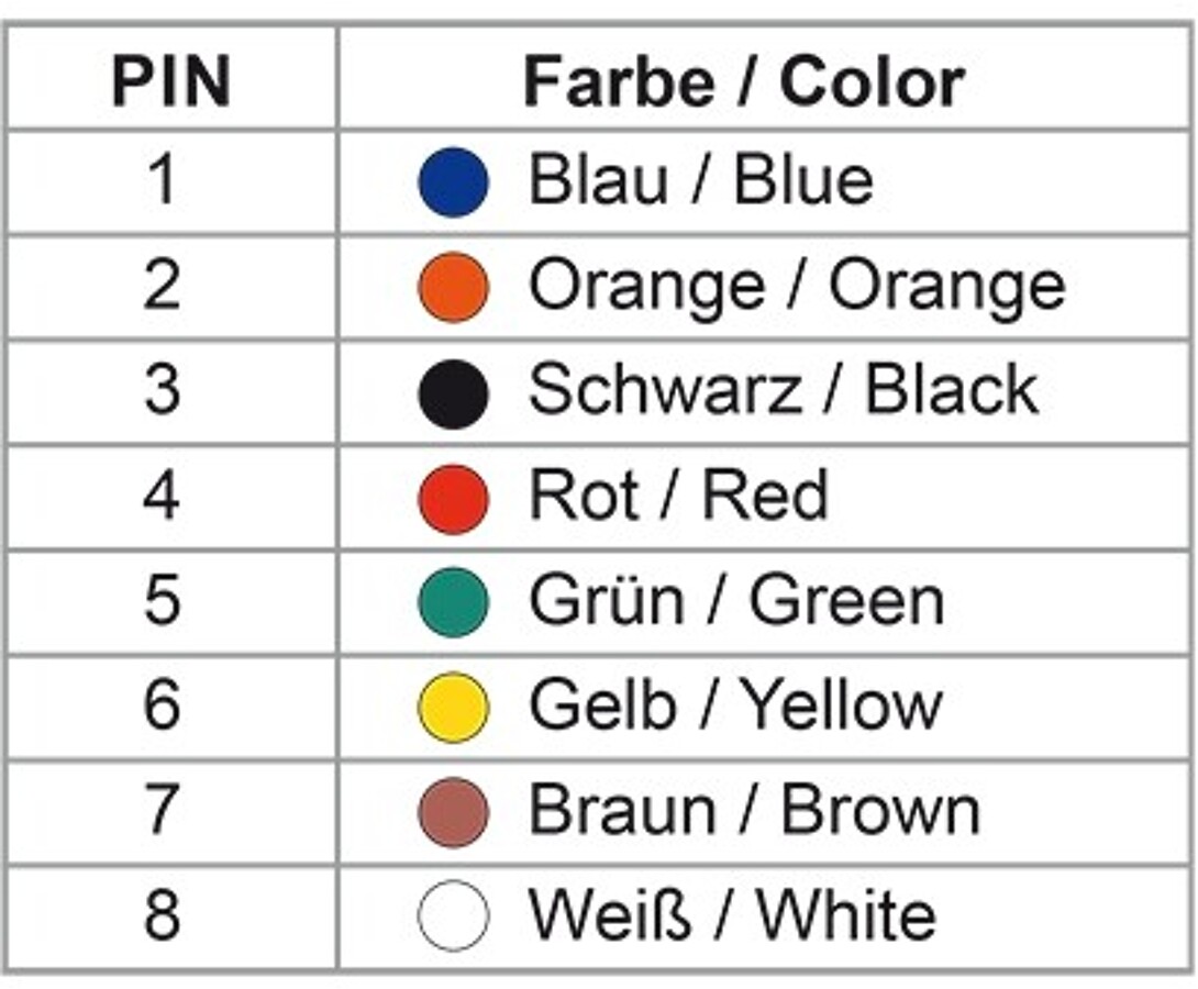 - Interfejs RJ45 z 8 stykami, połączenia przypisywane indywidualnie
