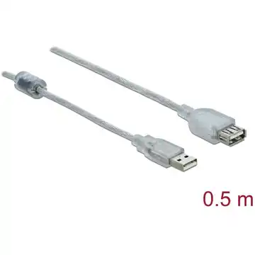 Przewód USB Delock umożliwia przedłużenie połączenia USB 2.0, oferując szybki transfer danych do 480 Mb/s. Dzięki rdzeniowi ferrytowemu i podwójnemu ekranowaniu zapewnia ochronę przed zakłóceniami, a miedziany przewodnik gwarantuje niezawodność transmisji. Kabel o średnicy 4 mm zapewnia wygodę użytkowania, idealny do stabilnych połączeń.