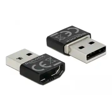 Adapter marki Delock z męskim wtykiem EASY-USB umożliwia podłączanie urządzeń do żeńskiego portu USB-A dowolną stroną. Przeznaczony wyłącznie do ładowania, nie obsługuje przesyłania danych. Adapter jest kompatybilny z większością urządzeń, ale nie działa z iPhone'ami.