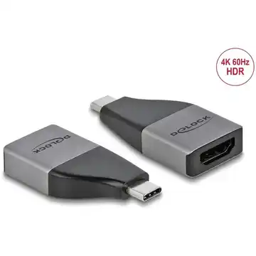 Adapter Delock umożliwia podłączenie monitora z interfejsem USB typu C do komputera lub laptopa z portem HDMI. Obsługuje rozdzielczość do 3840 x 2160 przy 60 Hz, umożliwiając przesyłanie obrazu i dźwięku w wysokiej jakości, a także obsługę HDCP, HDR i wyświetlania 3D.