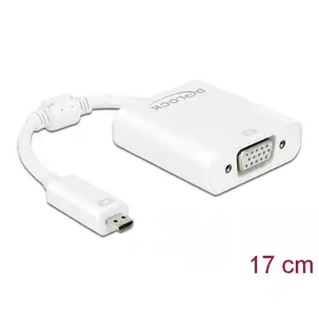 Adapter Delock umożliwia podłączenie monitora VGA do systemu za pomocą złącza HDMI Micro-D i przesyłanie sygnału audio przez gniazdo jack stereo 3,5 mm. Zapewnia rozdzielczość do 1080p oraz stabilne połączenie dzięki portowi VGA z nakrętkami śrubowymi. Kompatybilny z każdym systemem operacyjnym, urządzenie nie wymaga instalacji sterowników.