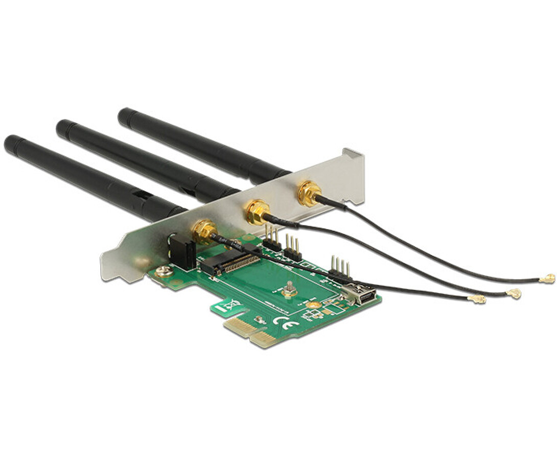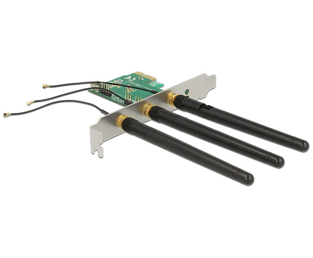 Karta PCI Express x1 1x M.2 keyA z 3 antenami zewnętrznymi low profile Delock 89568