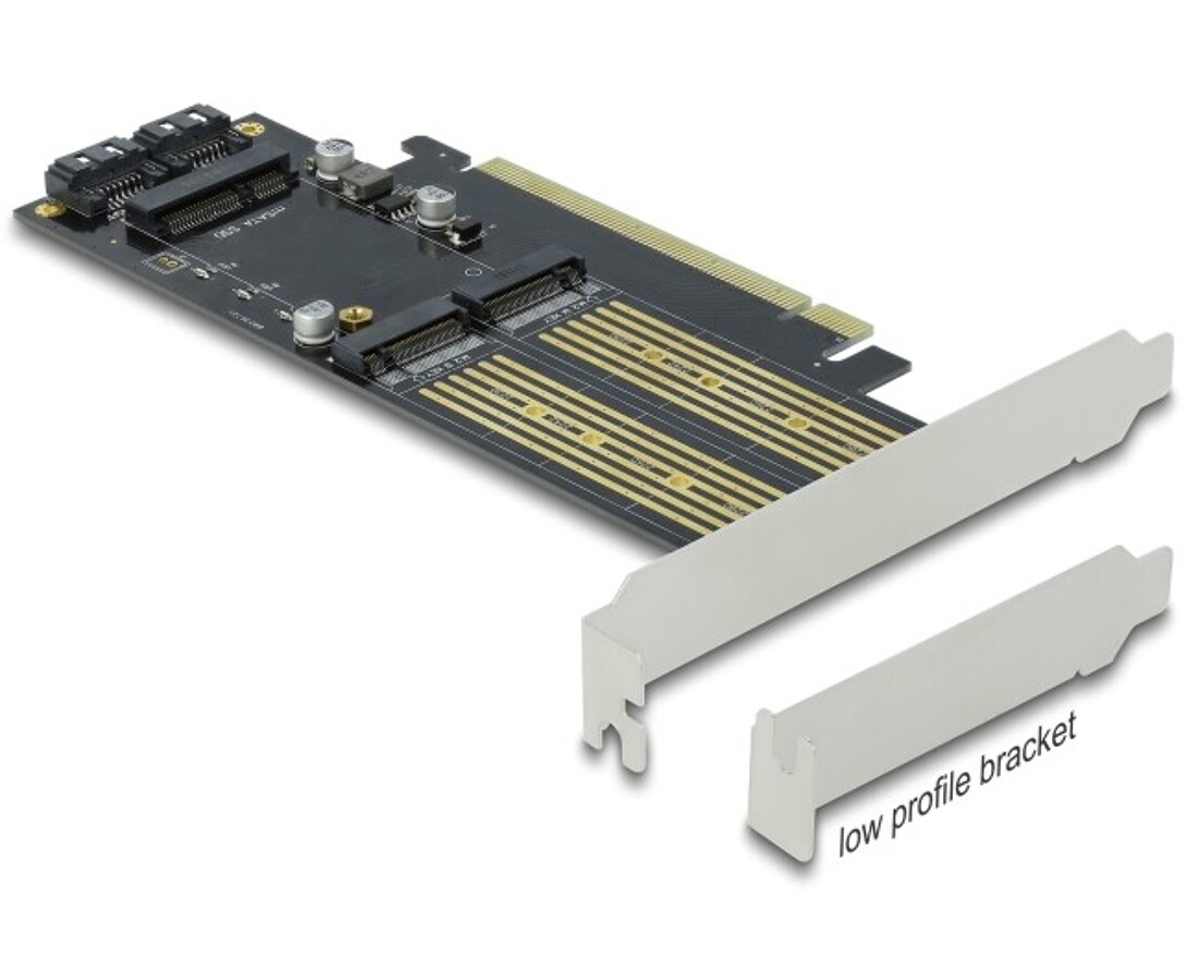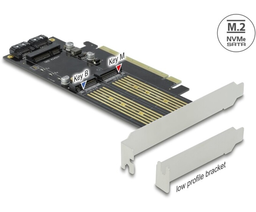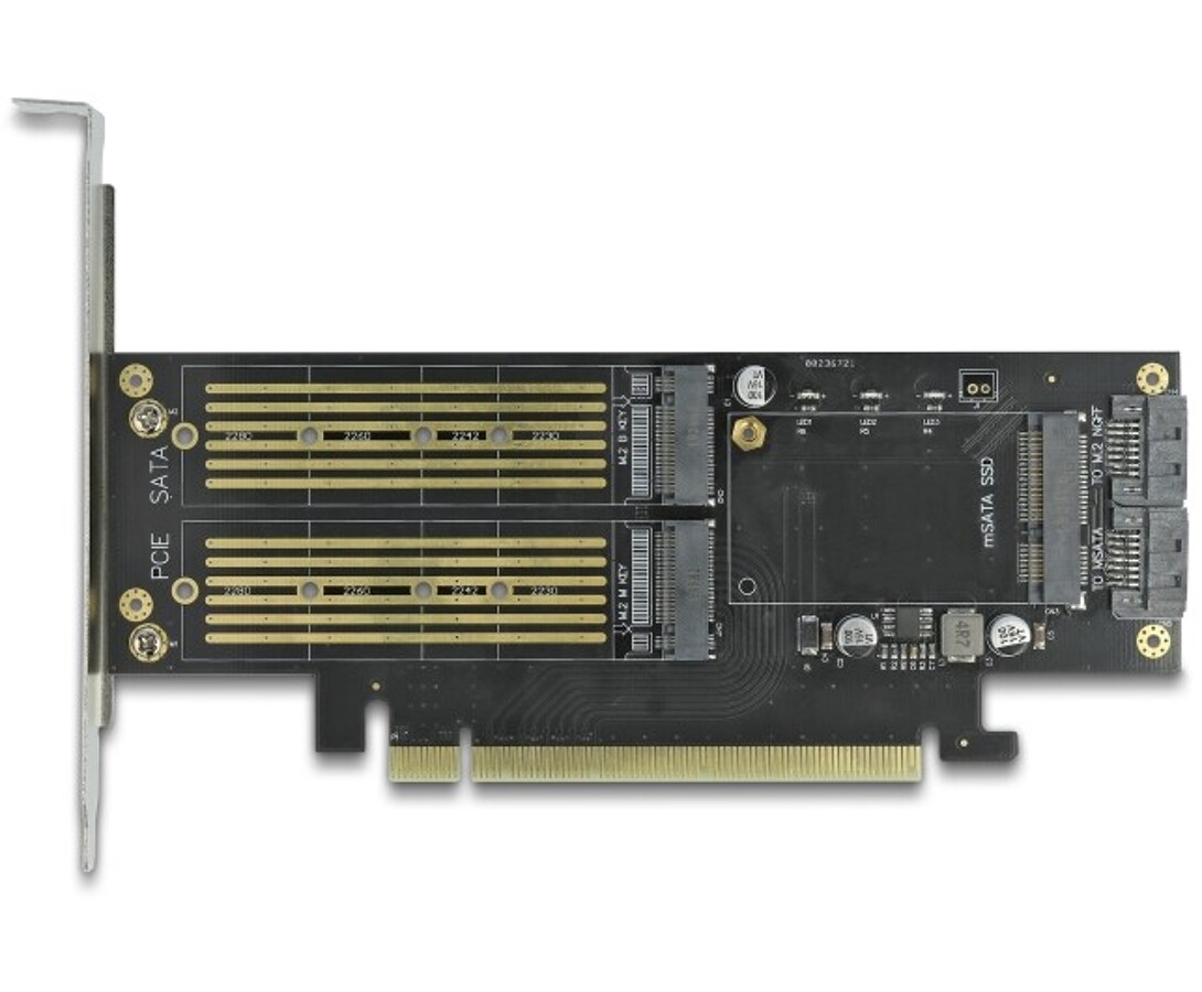 Karta PCI Express x16 1x M.2 key B + 1x NVMe M.2 key M + 1x mSATA low profile Delock 90486