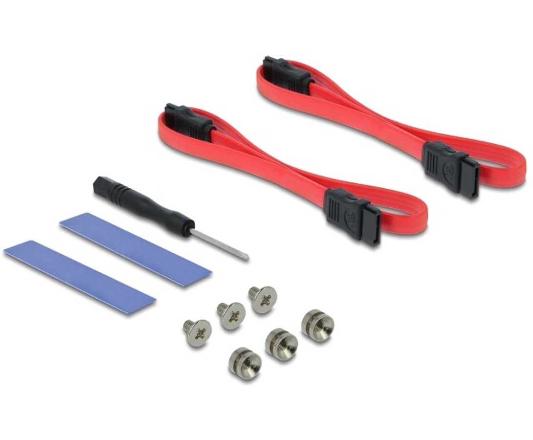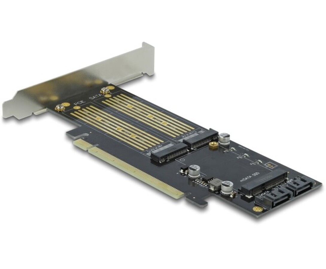 Karta marki Delock PCI Express dodaje rozszerzenie o gniazda M.2 oraz mSATA, umożliwiając podłączenie jednego modułu M.2 SATA w formatach 2280, 2260, 2242 lub 2230 do płyty głównej kablem SATA, jednego modułu M.2 NVMe / PCIe w formatach 2280, 2260, 2242 lub 2230 oraz pamięci mSATA poprzez kabel SATA. Sloty mogą być używane oddzielnie lub jednocześnie.