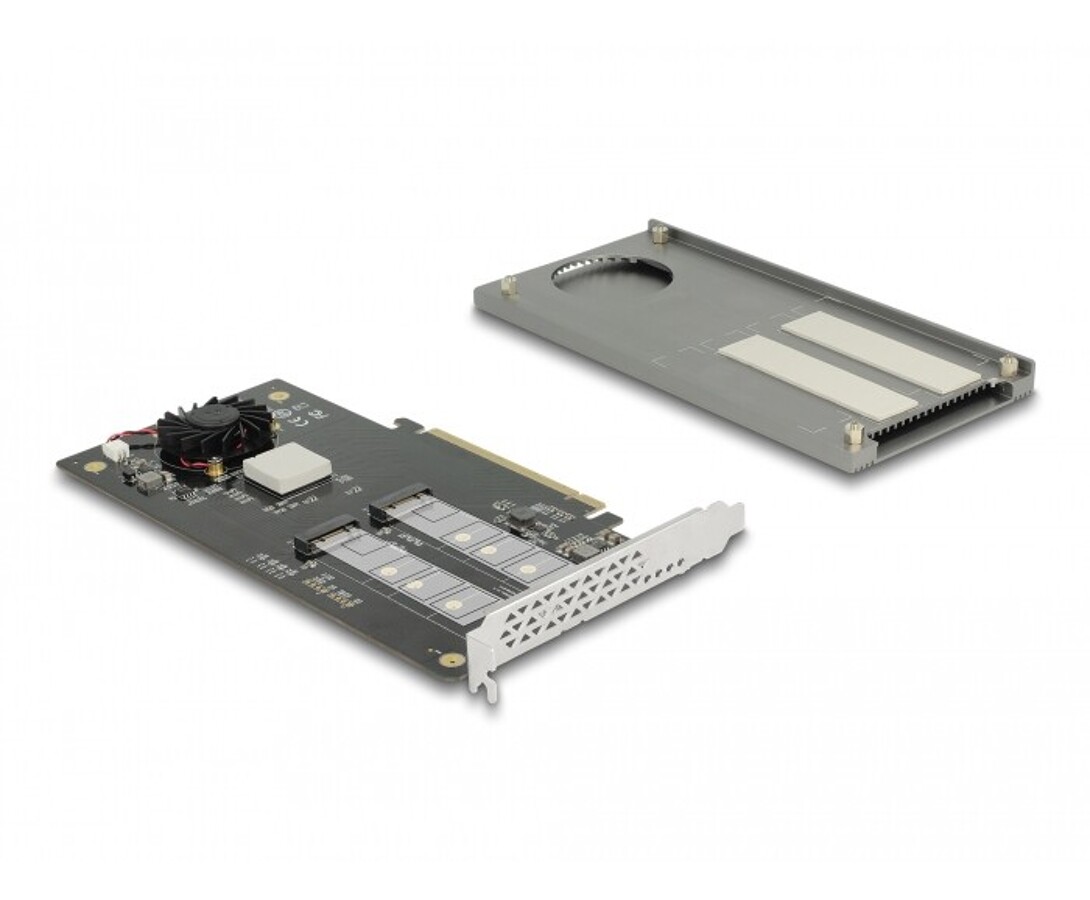 Karta PCI Express marki Delock rozbudowuje komputer osobisty o dwa gniazda M.2, umożliwiając podłączenie do dwóch M.2 SSD w formatach 2280, 2260, 2242 oraz 2230. Duży odbiornik ciepła i wentylator na płycie zapewniają odpowiednie chłodzenie modułów M.2, co gwarantuje stabilną pracę.