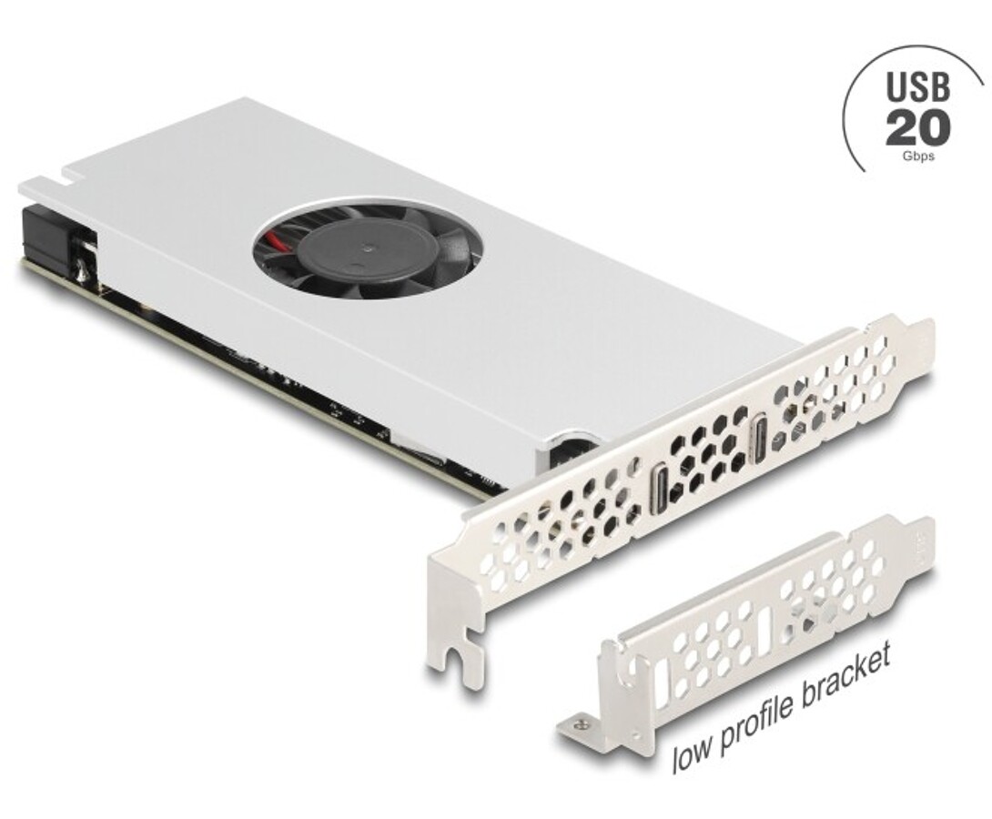 Karta PCI Express x16 2x USB 20Gbps USB-C dual channel z wentylatorem i radiatorem low profile Delock 90805