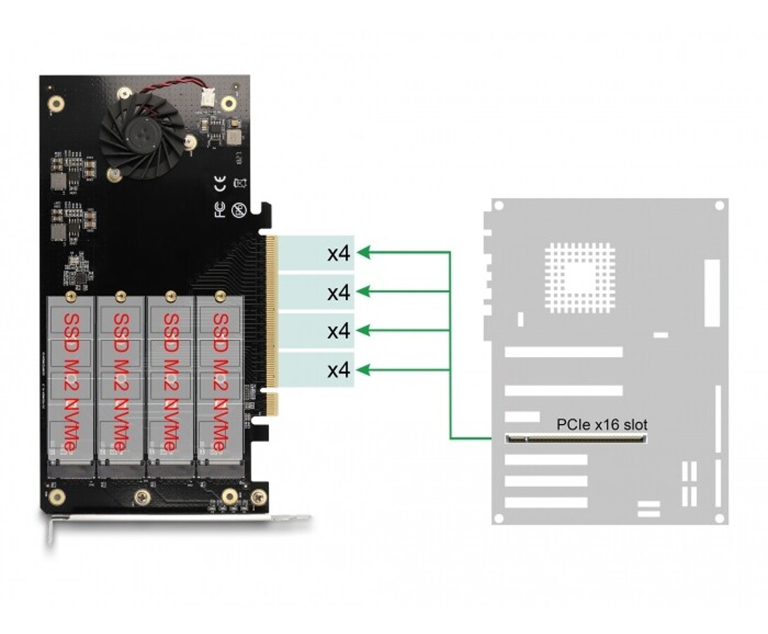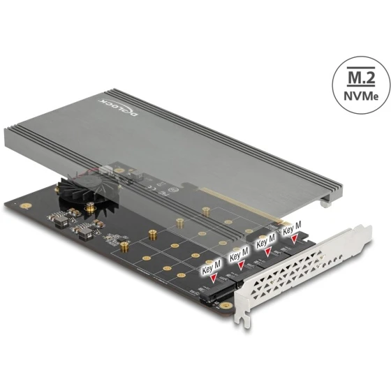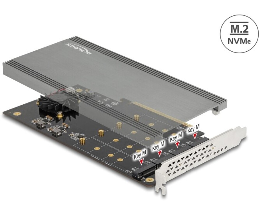 Karta PCI Express x16 4x NVMe M.2 key M z radiatorem i wentylatorem Delock 90050