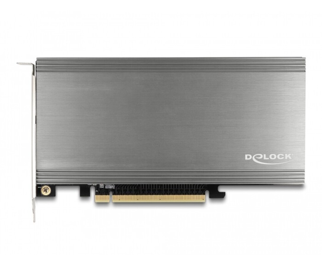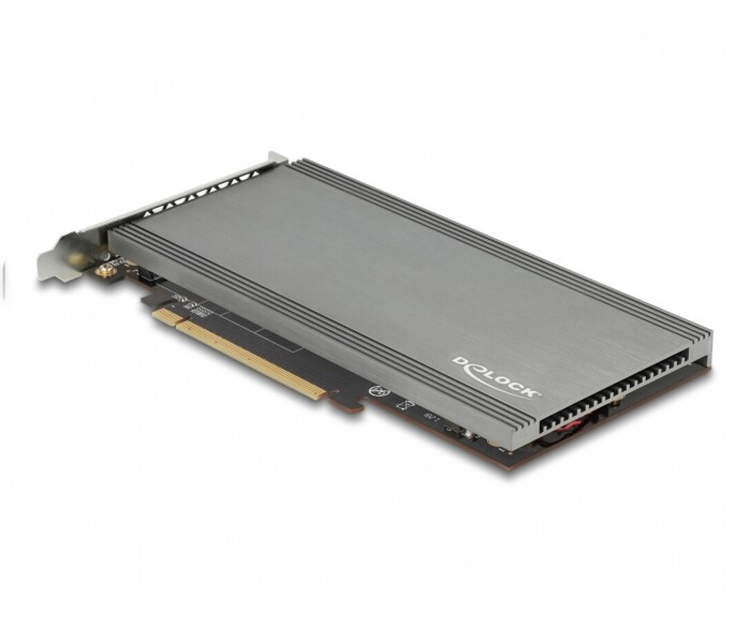 Karta PCI Express marki Delock rozbudowuje komputer osobisty o cztery gniazda M.2, umożliwiając podłączenie do czterech M.2 SSD w formatach 2280, 2260, 2242 oraz 2230. Wystarczające chłodzenie modułów M.2 zapewnia duży odbiornik ciepła oraz wentylator montowany na płycie.