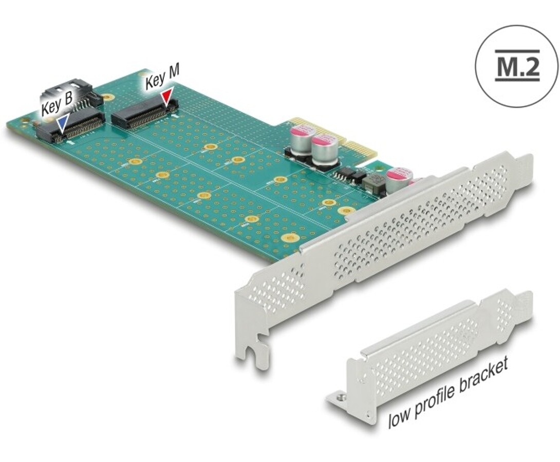 Karta PCI Express x4 1x M.2 key B + 1x NVMe M.2 key M low profile Delock 89047