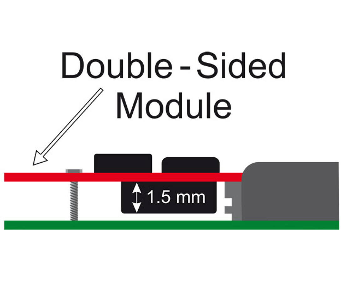 - Maksymalna wysokość komponentów zamocowanych na module: 1,5 mm, nakładanie dwustronnie zmontowanych modułów