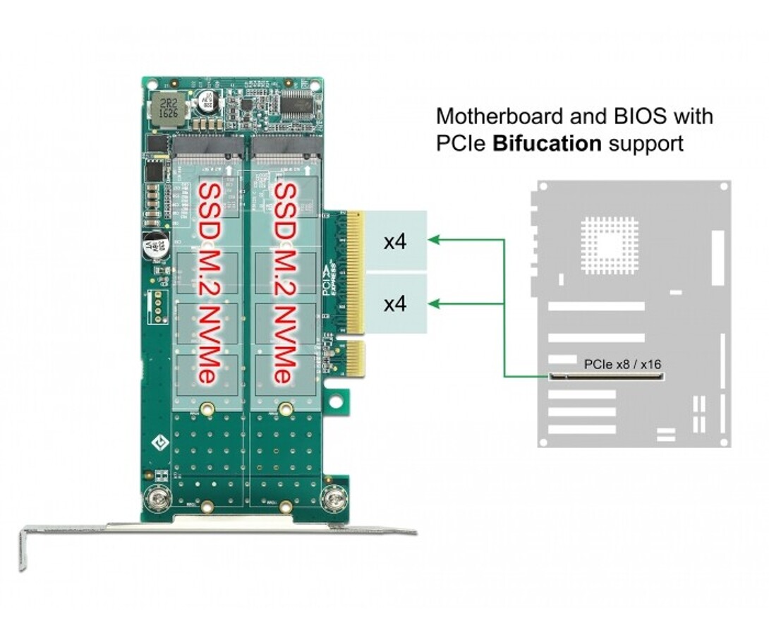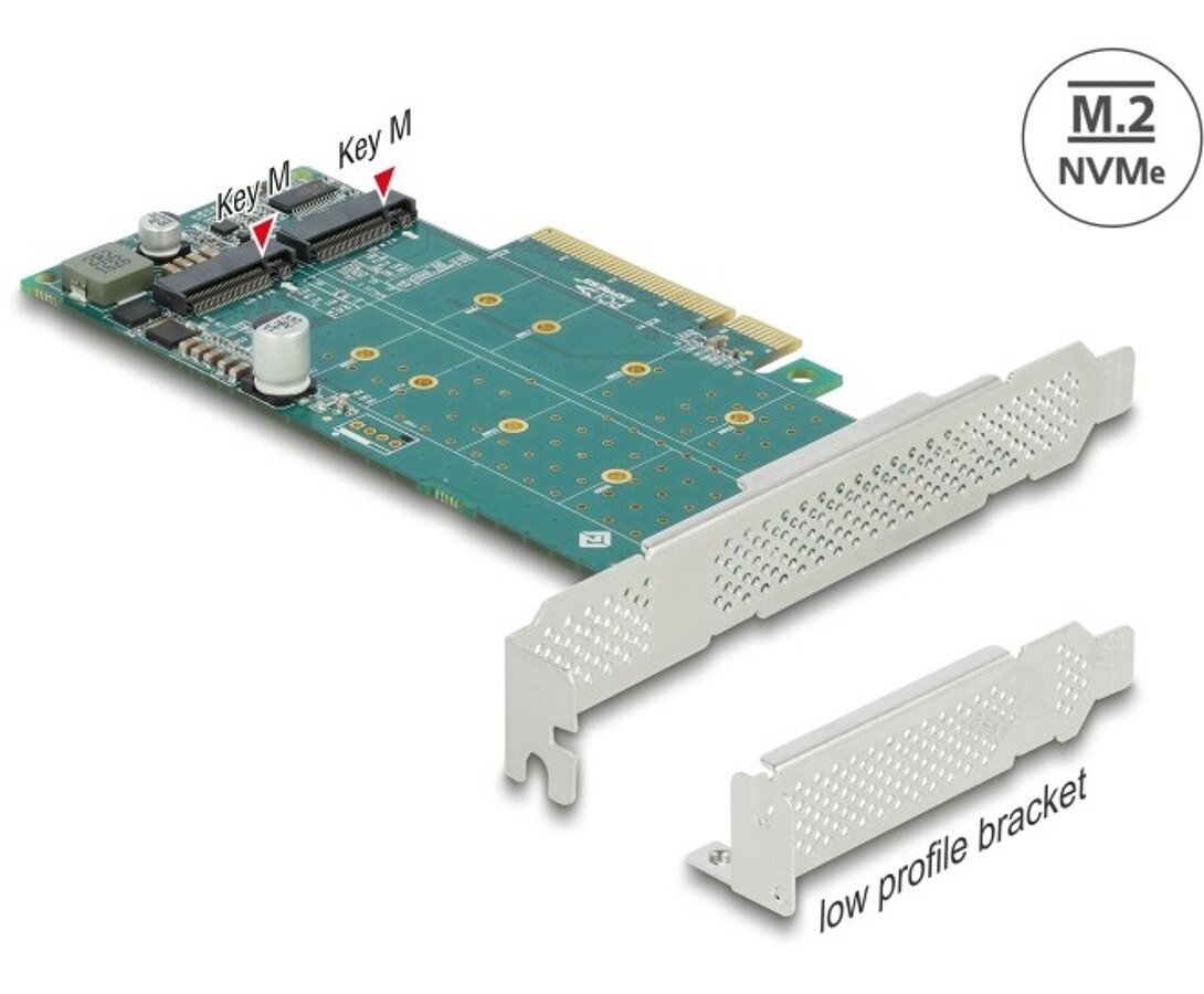 Karta PCI Express x8 2x NVMe M.2 key M low profile Delock 89045
