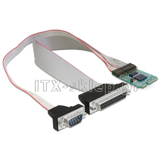 Kontroler mini PCI-Express - RS-232 to nowość w ofercie niemieckiej firmy Delock. Oparte na chipsecie Oxford OXPCIe952 urządzenie pozwala rozbudować płytę główną o sprzętowe porty: 1x RS-232 oraz 1x LPT. Kontroler zapewnia transfer do 460 Kb/s, jest kompatybilny z 16950 UART, FIFO 128 bajtów, SPP/EPP/ECP - IEEE1284. Długość kabla wynosi odpowiednio 30cm i 28cm. Obsługiwane systemy operacyjne: Windows XP/Vista/7/7-64.