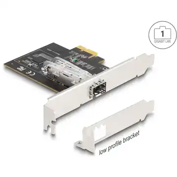 Karta sieciowa PCI Express marki Delock z gniazdem SFP umożliwia połączenie komputera z siecią gigabitową przez moduł światłowodowy. Wspiera VLAN, ramki Jumbo 9k i funkcję PXE, gwarantując stabilną, szybką i wydajną komunikację w sieciach lokalnych.