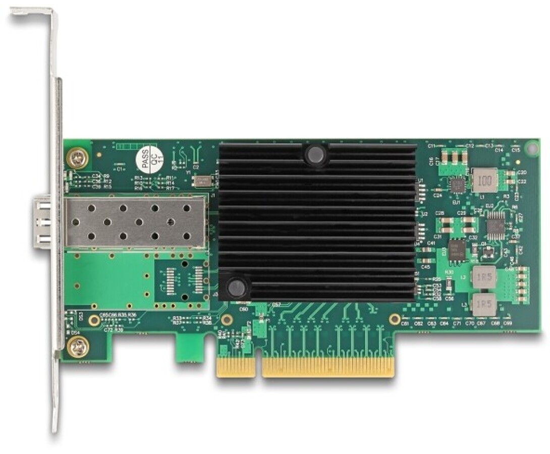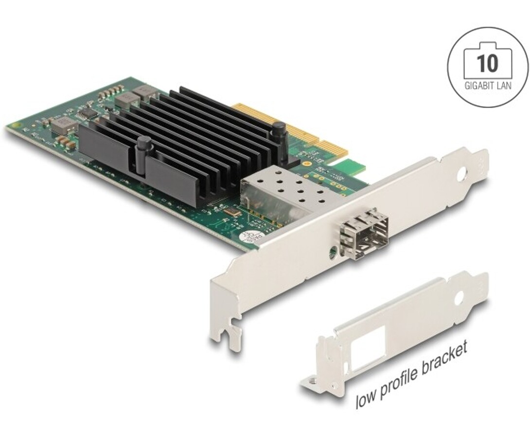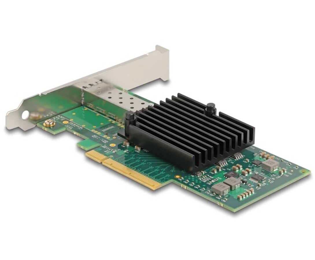 Karta sieciowa PCI Express marki Delock zapewnia połączenie dla modułu SFP+ z prędkością transferu do 10 Gbps, umożliwiając podłączenie komputera do sieci światłowodowej za pomocą opcjonalnego modułu 10 gigabitowego SFP+. Karta obsługuje VLAN, ramki Jumbo 9k oraz funkcję PXE, zapewniając wysoką wydajność i stabilność w sieciach serwerowych i profesjonalnych środowiskach sieciowych.