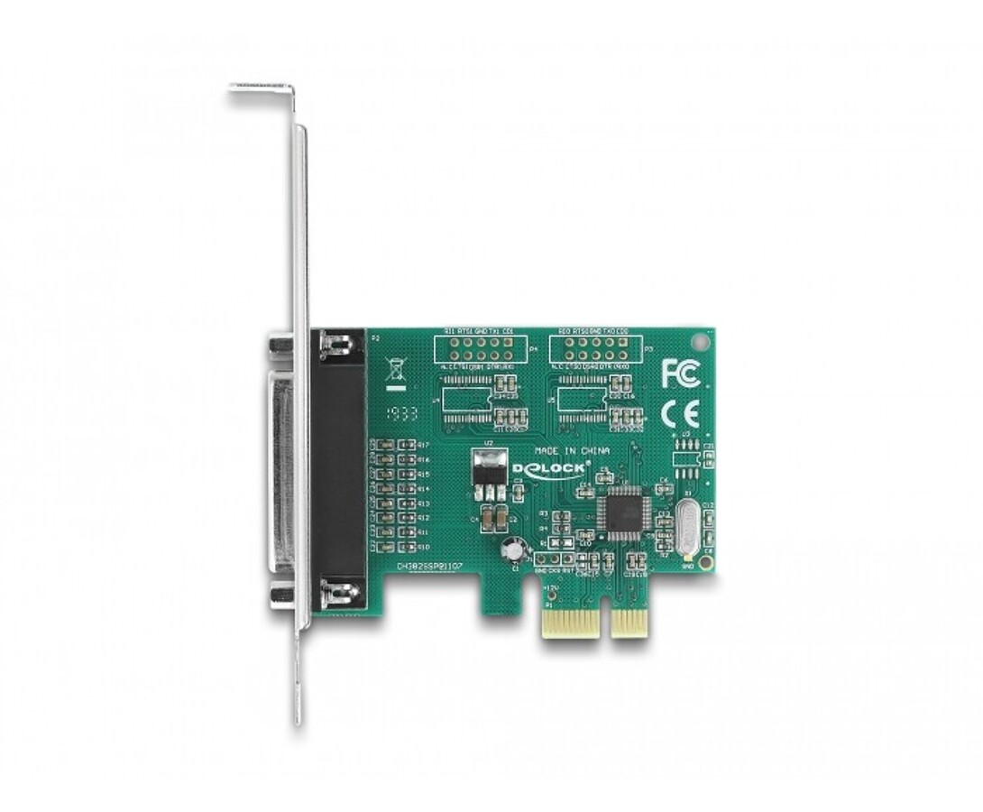 Karta PCI Express marki Delock rozszerza komputer o dwa porty RS-232 oraz jeden port równoległy DB25, umożliwiając podłączenie urządzeń takich jak drukarki, skanery czy sterowniki przemysłowe. Chipset ASIX AX99100 zapewnia stabilną komunikację i wysoką kompatybilność z interfejsem 16C950 UART, a niski profil umożliwia montaż w komputerach Mini PC.