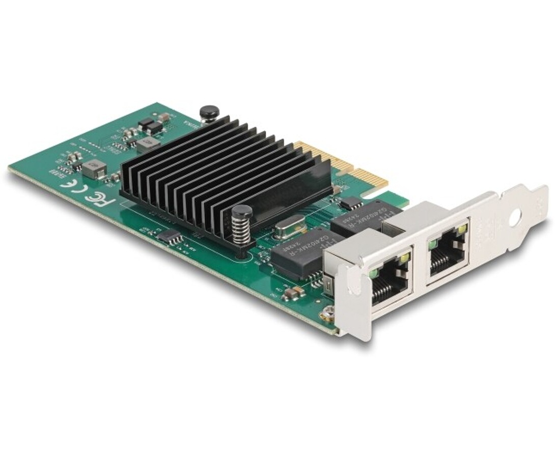 Karta sieciowa PCI Express marki Delock z dwoma portami RJ45 umożliwia transmisję danych z prędkością do 10 Gbps, zapewniając stabilne i szybkie połączenia przy użyciu standardowych kabli Cat.6 lub Cat.6A. Obsługa ramek Jumbo 9k, VLAN i PXE gwarantuje wydajną pracę w wymagających środowiskach sieciowych.