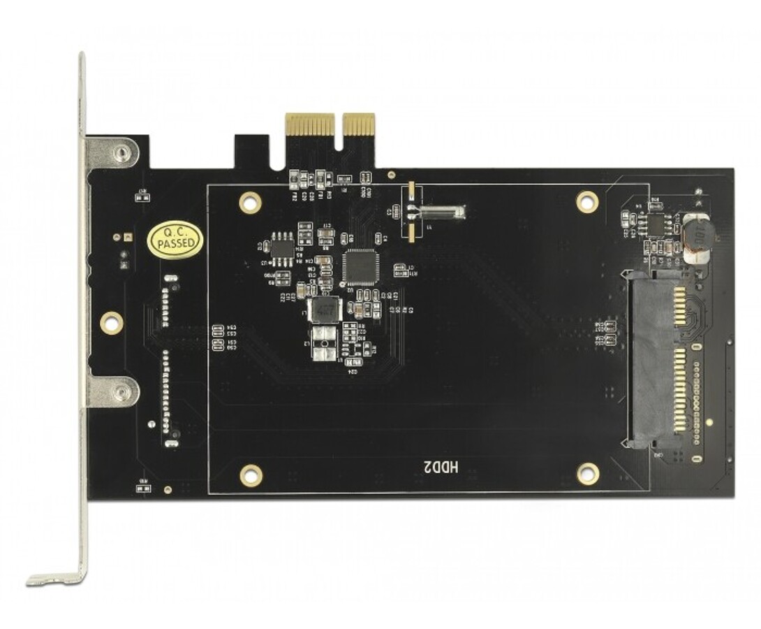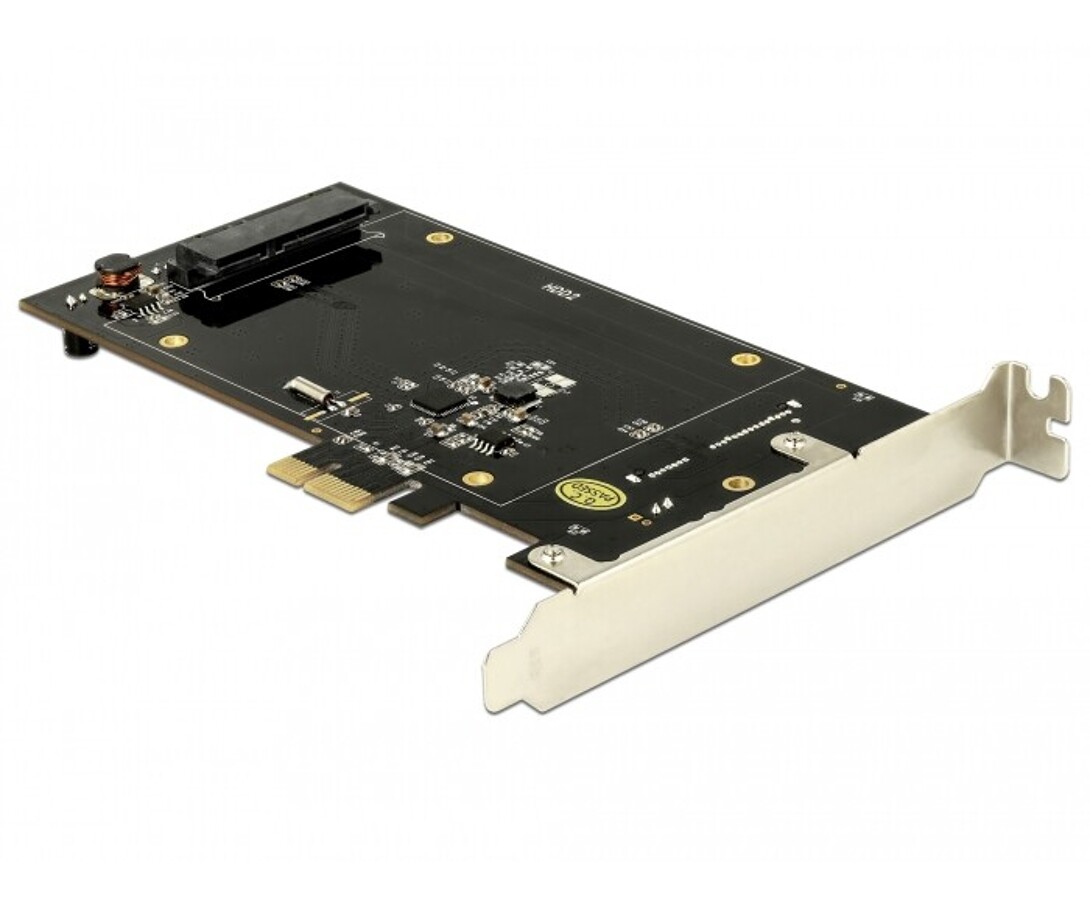 Karta PCI Express marki Delock rozszerza komputer osobisty o dwa porty SATA 22 pin, umożliwiając podłączenie do dwóch dysków SSD lub HDD 2,5". Dyski montowane są po obu stronach karty PCIe, co pozwala na efektywne wykorzystanie przestrzeni w obudowie. Użycie obu portów SATA zajmuje przyległy slot PCI, a karta obsługuje funkcje zwiększające wydajność i umożliwia bootowanie systemu z podłączonych dysków.