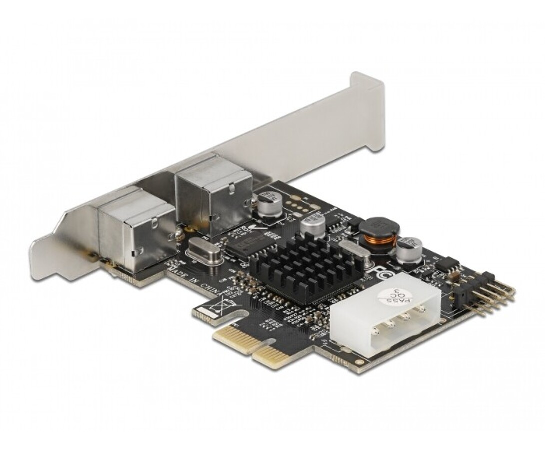 Karta PCI Express marki Delock dodaje do komputera dwa porty RS-232, umożliwiając podłączenie urządzeń komunikacyjnych, konwerterów i systemów IoT. Chipset WCH CH382L gwarantuje stabilną transmisję danych i kompatybilność z interfejsem 16C550 UART, a niski profil umożliwia montaż w komputerach Mini PC oraz środowiskach przemysłowych.