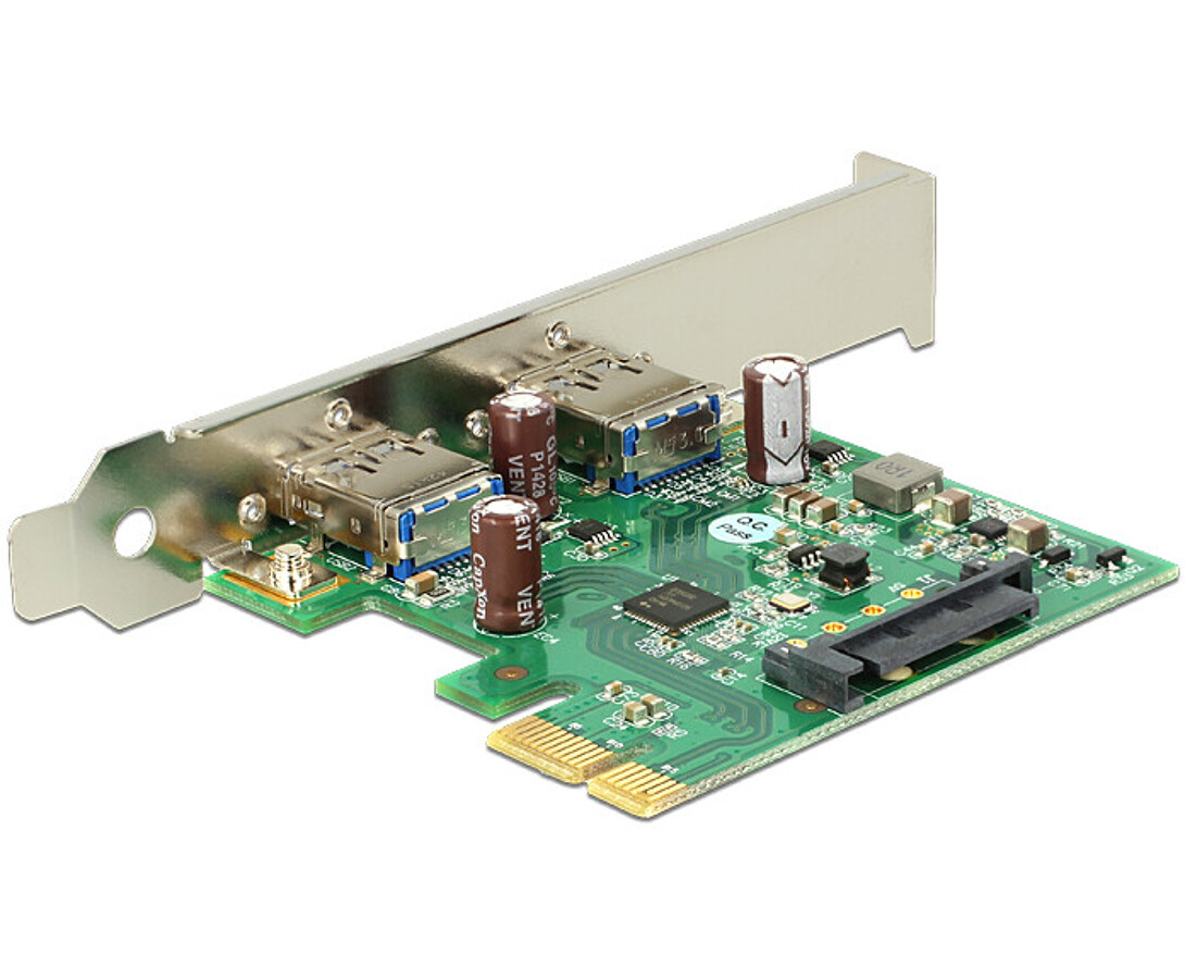 Karta PCI Express USB 3.0 marki Delock umożliwia rozbudowę komputera o dwa zewnętrzne porty USB 3.0 typu A, zapewniając szybkie połączenie dla nowoczesnych urządzeń, takich jak stacje dokujące, czytniki kart, obudowy zewnętrzne czy koncentratory USB. Oparta na chipsecie Renesas uPD720202, karta oferuje wysoką prędkość transmisji danych do 5Gb/s i pełną zgodność z interfejsami USB 2.0 oraz 1.1. Obsługuje standard ładowania baterii w wersji 1.2 (CDP), a także specyfikację xHCI 1.0 i zarządzanie energią według PCI Bus Power Management 1.2. Solidne złącza USB z trzema nakrętkami montażowymi (M2 × 0,4) zapewniają stabilność połączenia w środowiskach przemysłowych i serwerowych. Karta zasilana jest przez złącze SATA 15-pin i może być montowana również w obudowach niskoprofilowych.