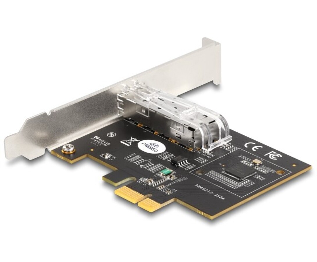 Karta sieciowa PCI Express marki Delock umożliwia podłączenie komputera do sieci poprzez moduł SFP z prędkością transferu do 1 Gbps, obsługując opcjonalny moduł gigabitowy SFP marki Delock, który pozwala na połączenie za pomocą światłowodu. Obsługa VLAN, ramki Jumbo 9k oraz funkcja PXE zapewniają niezawodną i wydajną pracę w sieciach lokalnych, a wskaźnik LED informuje o stanie połączenia i aktywności.