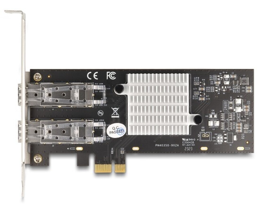 Karta sieciowa PCI Express marki Delock z dwoma gniazdami SFP umożliwia połączenie z siecią światłowodową o prędkości do 1 Gbps. Obsługuje ramki Jumbo 9k oraz funkcję PXE, co gwarantuje niezawodne i szybkie działanie w sieciach serwerowych i profesjonalnych systemach IT.