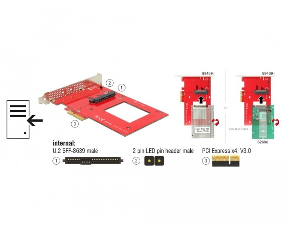 Karta PCI Express x4 1-portowa U.2 NVMe SFF-8639 wewnętrzna Delock 89469