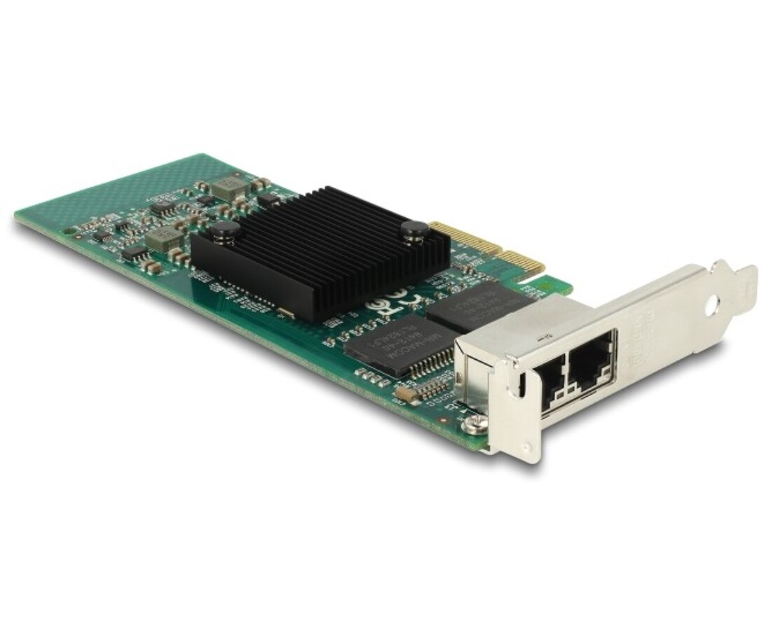 Karta sieciowa PCI Express marki Delock z dwoma portami RJ45 umożliwia transmisję danych z prędkością do 10 Gbps, zapewniając stabilne i szybkie połączenia przy użyciu standardowych kabli Cat.6 lub Cat.6A. Obsługa ramek Jumbo 9k, VLAN i PXE gwarantuje wydajną pracę w wymagających środowiskach sieciowych.