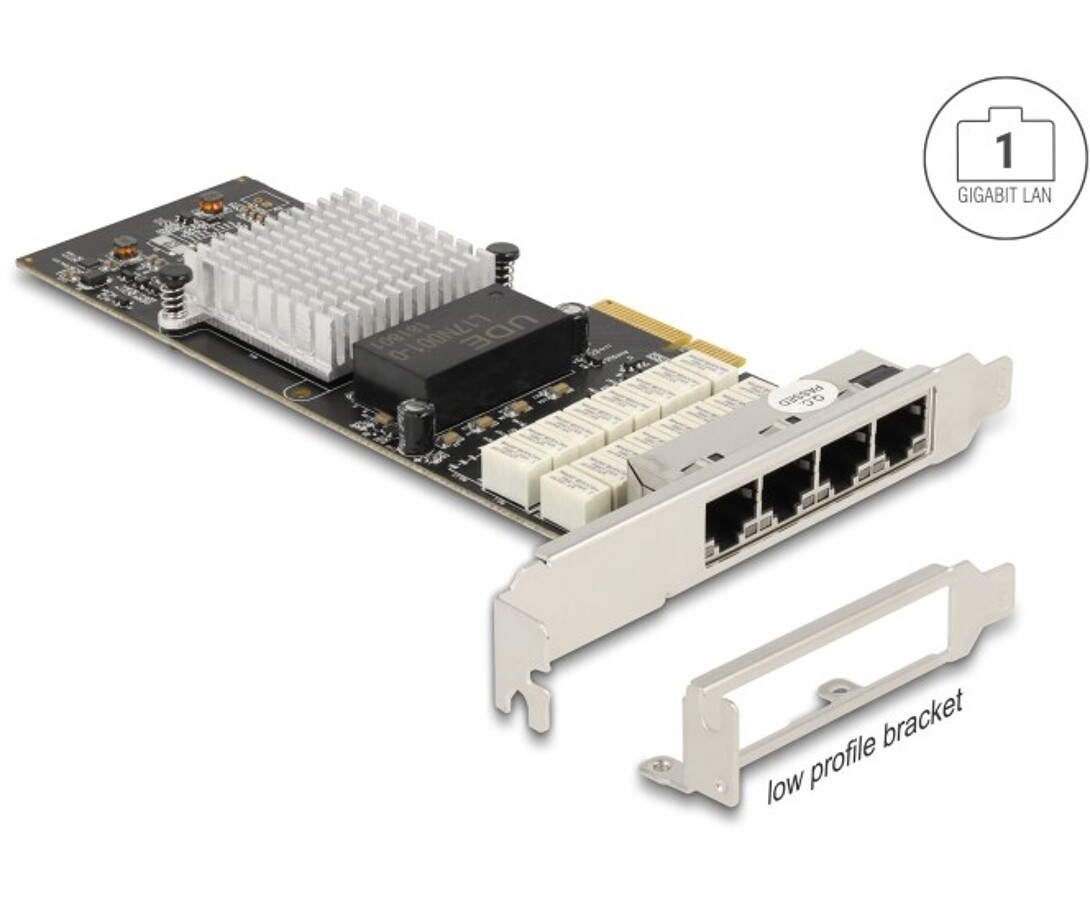 Karta PCI Express marki Delock oferuje cztery porty sieciowe z prędkością transmisji do 1000 Mbps, wyposażona w tryb Bypass zapewniający ciągłość działania sieci. Cztery porty są podzielone na dwie grupy, które można połączyć w obejście. Tryb obejścia Bypass włącza się automatycznie po wykryciu zaniku zasilania IPS, ładowania BIOSu lub awarii systemu operacyjnego bądź aplikacji. Mechaniczne przełączniki przekierowują ruch sieciowy na drugi port pary adaptera, omijając miejsce wystąpienia problemu serwera i utrzymując nieprzerwane połączenie sieciowe. Funkcja jest przydatna w zastosowaniach serwerowych, np. przy zabezpieczeniach sieciowych lub bramach wewnętrznych systemów ochrony. Obwód obejścia działa również po zaniku zasilania, dzięki czemu połączenie sieciowe pozostaje aktywne nawet przy wyłączonym serwerze.