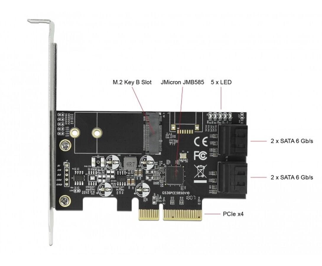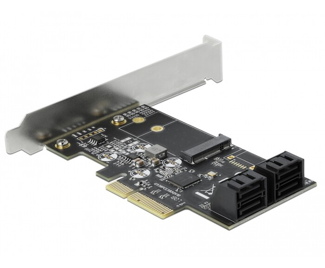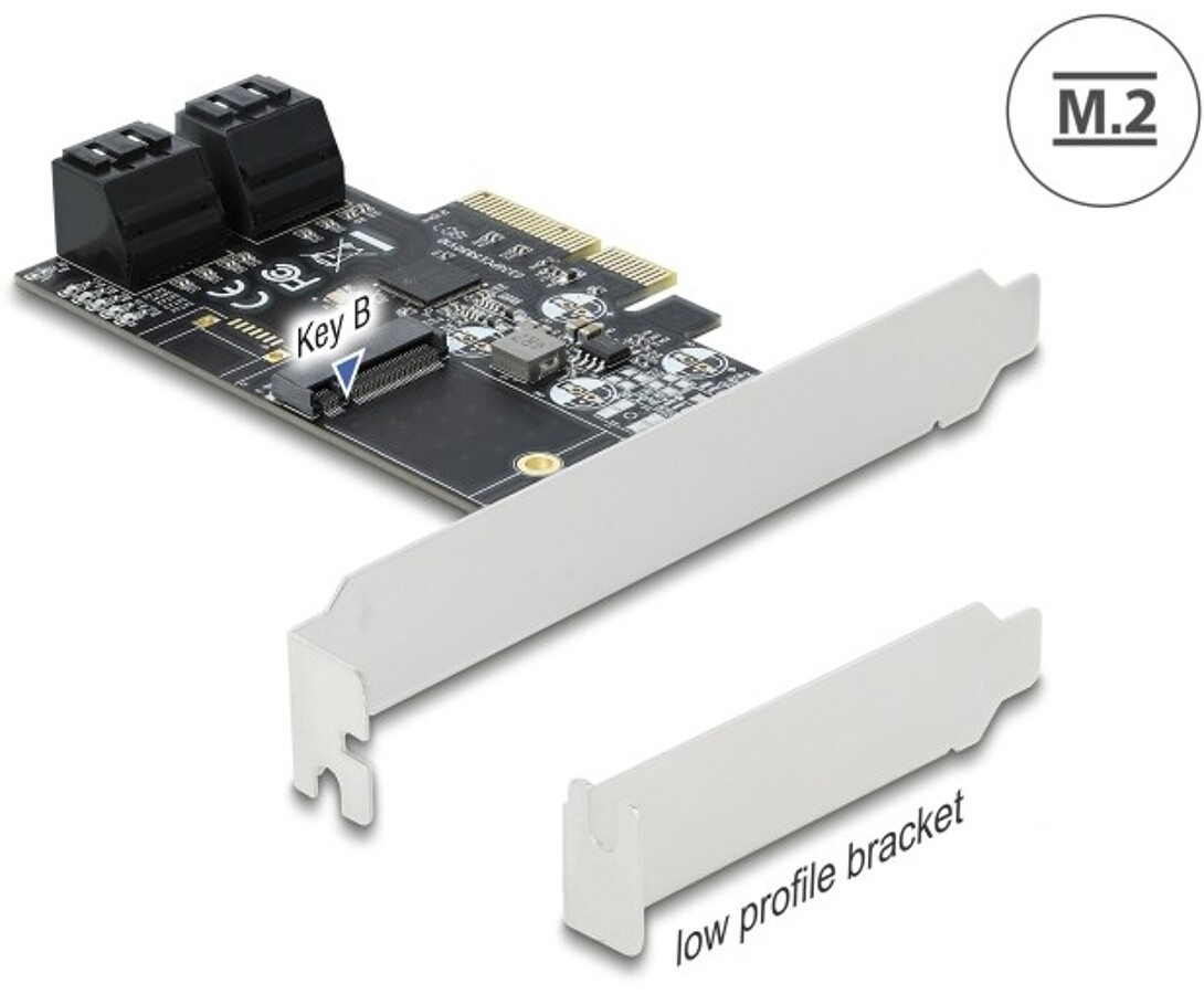 Karta PCI Express x4 4x SATA + 1x M.2 key B low profile Delock 90396