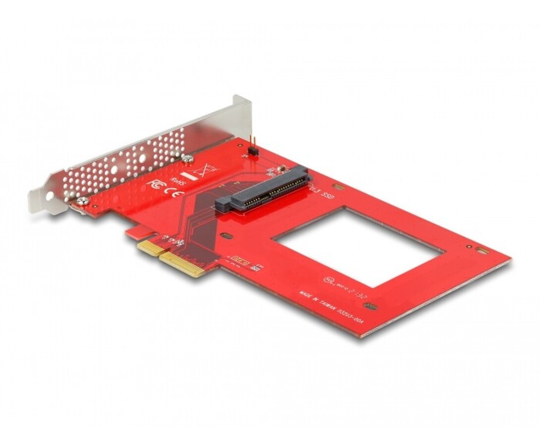 Karta PCI Express marki Delock rozszerza komputer o cztery interfejsy U.2, umożliwiając jednoczesne podłączenie czterech dysków SSD NVMe 2.5". Wykorzystuje interfejs PCIe 4.0 x16, oferując maksymalną przepustowość i niezawodność, obsługę TRIM, S.M.A.R.T., rozruchu UEFI oraz wskaźniki LED sygnalizujące aktywność.