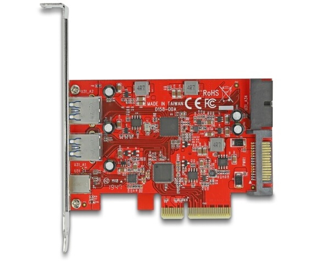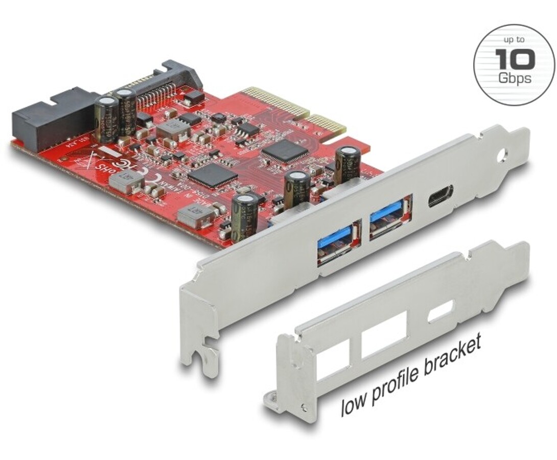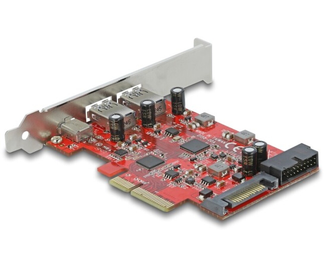 Karta PCI Express x4 do 1x USB-C 10Gbps zewn. żeńskie + 2x USB-A 10Gbps zewn. żeńskie + 1x wewn. USB 5Gbps pin-header Delock 904
