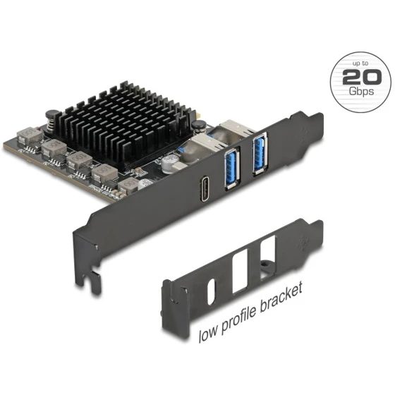 Karta PCI Express x4 do 1x USB-C 20Gbps + 2x USB-A 10Gbps niskoprofilowa Delock 90891