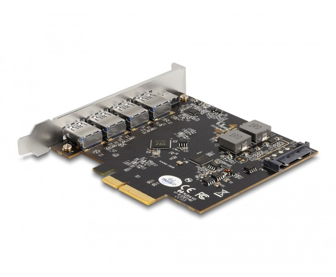 Karta PCI Express marki Delock dodaje do komputera cztery porty USB 5 Gbps, umożliwiając szybkie podłączanie urządzeń takich jak stacje dokujące, czytniki kart czy obudowy zewnętrzne. Dzięki chipsetowi Renesas D720201 oferuje stabilny transfer danych i wydajne zasilanie do 2 A na port bez potrzeby dodatkowego zasilania.