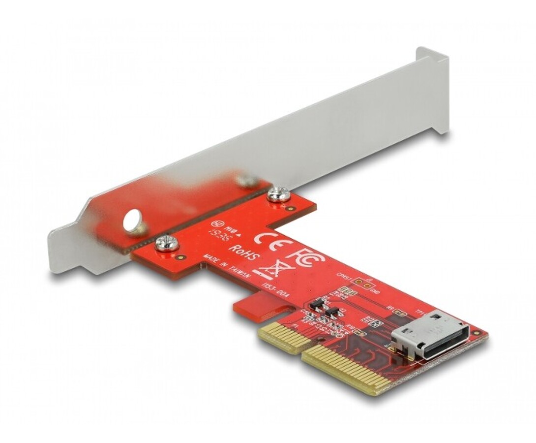 Karta PCI Express marki Delock rozszerza komputer o jedno złącze OCuLink SFF-8612, umożliwiając podłączenie dysku SSD przy użyciu dodatkowego przewodu. Urządzenie przesyła sygnał PCI Express w standardzie 4.0 z wykorzystaniem protokołu NVMe 1.2, co pozwala na uzyskanie bardzo wysokiej prędkości transferu danych do 64 Gb/s. Karta obsługuje funkcję rozruchową w środowisku UEFI 2.3.1, dzięki czemu może służyć jako nośnik systemowy w nowoczesnych komputerach. Rozwiązanie przeznaczone do zastosowań wymagających maksymalnej wydajności i stabilności działania.