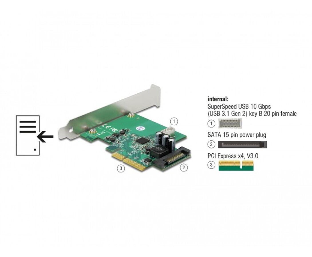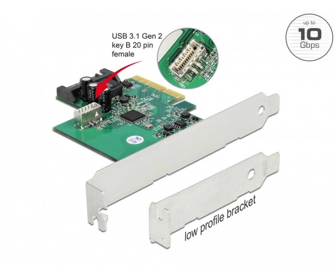 Karta PCI Express x4 do 1x wewn. USB 3.2 Gen 2 key B 20-pinowe żeńskie Delock 90068