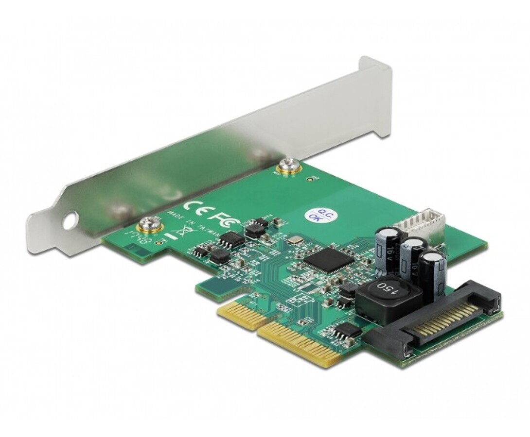 Karta PCI Express marki Delock umożliwia rozszerzenie komputera o jedno wewnętrzne gniazdo USB 3.2 key B 20 pin, które pozwala na podłączenie kabli zapewniających do dwóch interfejsów USB typu A. Rozwiązanie to umożliwia elastyczną konfigurację wewnętrznych połączeń USB, zapewniając jednocześnie szybki transfer danych do 10 Gbps. Chipset Asmedia ASM3142 gwarantuje stabilność pracy, wysoką wydajność oraz pełną zgodność z nowoczesnymi standardami USB. Zasilanie może być dostarczane zarówno przez interfejs PCI Express, jak i przez 15-pinowe złącze SATA, co pozwala na optymalne zasilanie podłączonych urządzeń.