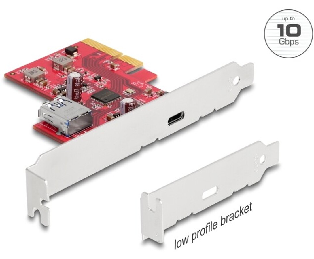 Karta PCI Express x4 do 1x zewn. USB 10Gbps typu C żeńskie + 1x wewn. USB 10Gbps typ A żeńskie, niskoprofilowa Delock 90158