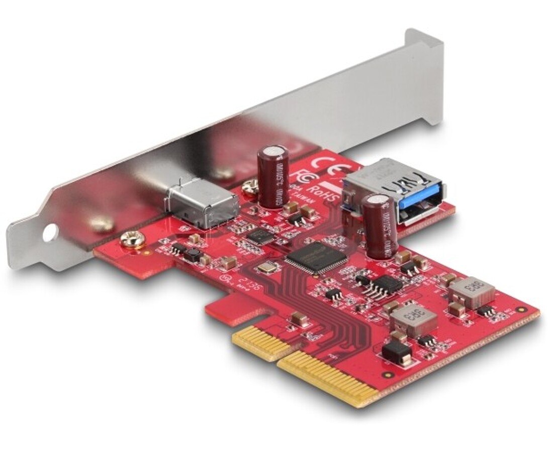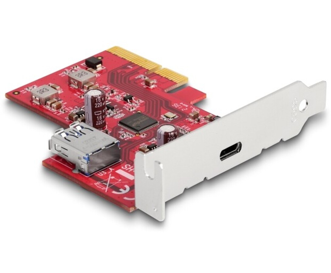 Karta PCI Express marki Delock rozszerza komputer o port USB 3.2 Gen 2x2 Type-C, zapewniając prędkość transmisji do 20 Gb/s i moc zasilania do 15 W. Wykorzystuje chipset Asmedia ASM3242 oraz obsługuje UASP, funkcję rozruchową i zgodność z xHCI 1.1, oferując najwyższą wydajność dla nowoczesnych urządzeń USB-C.
